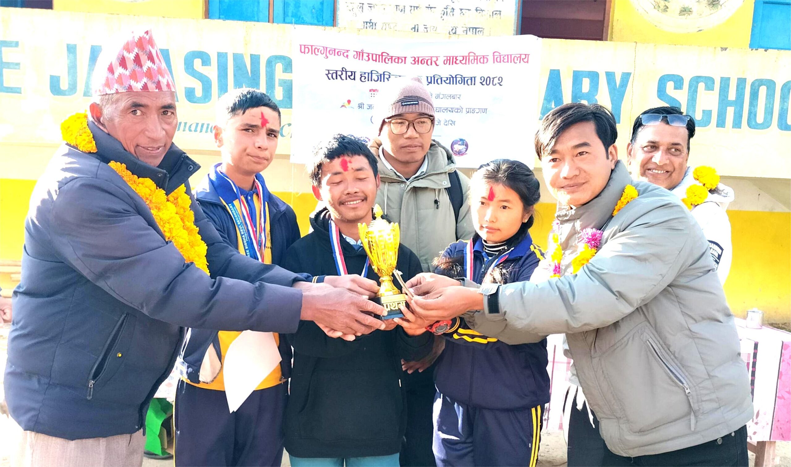 फाल्गुनन्द गाउँपालिका गाउँकार्यपालिकाको कार्यालय, शिक्षा, युवा तथा खेलकुद शाखाको आयोजनामा प्रतियोगिता सम्पन्न भएको थियो । कार्यक्रम जलसिंह माध्यमिक विद्यालयका प्रधानाध्यापक चन्द्र प्रसाद अधिकारीको अध्यक्षतामा सम्पन्न भएको थियो ।