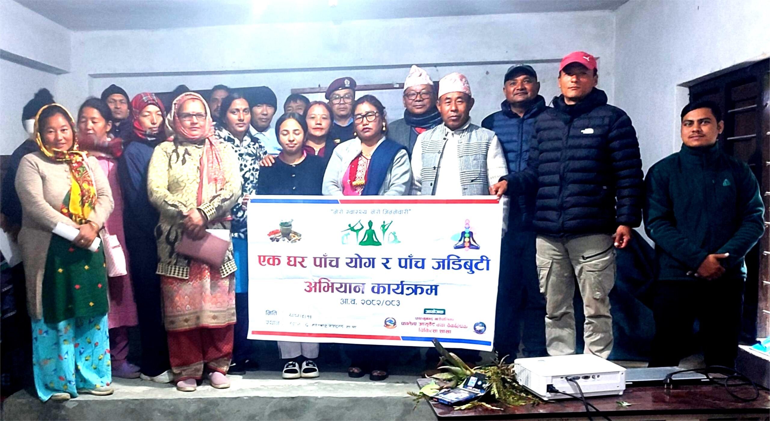 शुक्रवार फाल्गुनन्द–६ को वडा कार्यालय भएको कार्यक्रमका सहभागीहरुलाई पाँच वटा योग अभ्यास र गाउँ घरमै पाइने पाँच जडिबूटीको बारेमा जानकारी गराइएको थियो । अभियानको सहजीकरण गर्दै बरिष्ठ कबिराज राजु पराजुली र राम कृपाल यादवले औषधीय गुण भएका घीउ कुमारी, तुलसी, गुर्जो, असुरो र पुदिनाको प्रयोगका फाइदाहरुको विषयमा जानकारी गराउँनु भएको थियो । त्यस्तै महत्वपूर्ण पाँच योगका आसन र फाइदाको विषयमा समेत सहजिकरण गरिएको बरिष्ठ कबिराज राजु पराजुलीले जानकारी दिनुभयो ।